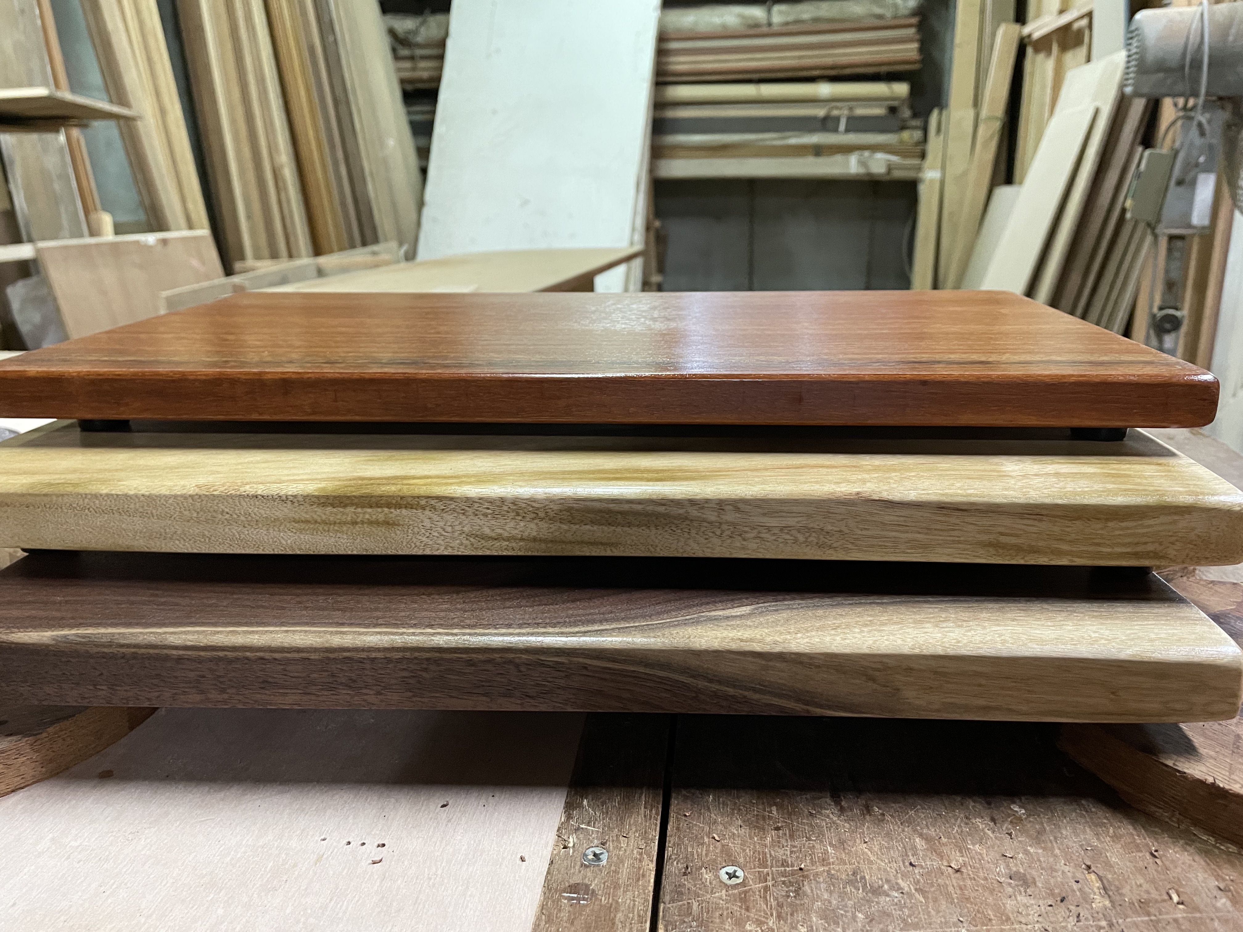 내가 정말 좋아하는 동생의 부탁이라 도마재 고르는 거부터 상당히 신경을 썼다. 캄포와 월넛은 도마재로 제작을 몇 번 해봤지만 그라나딜로는 상당히 생소한 목재다. 악기재로 주로 사용되는 목재라고 하여 호기심이 가서 이것도 같이 주문하여 제작하게 되었다.