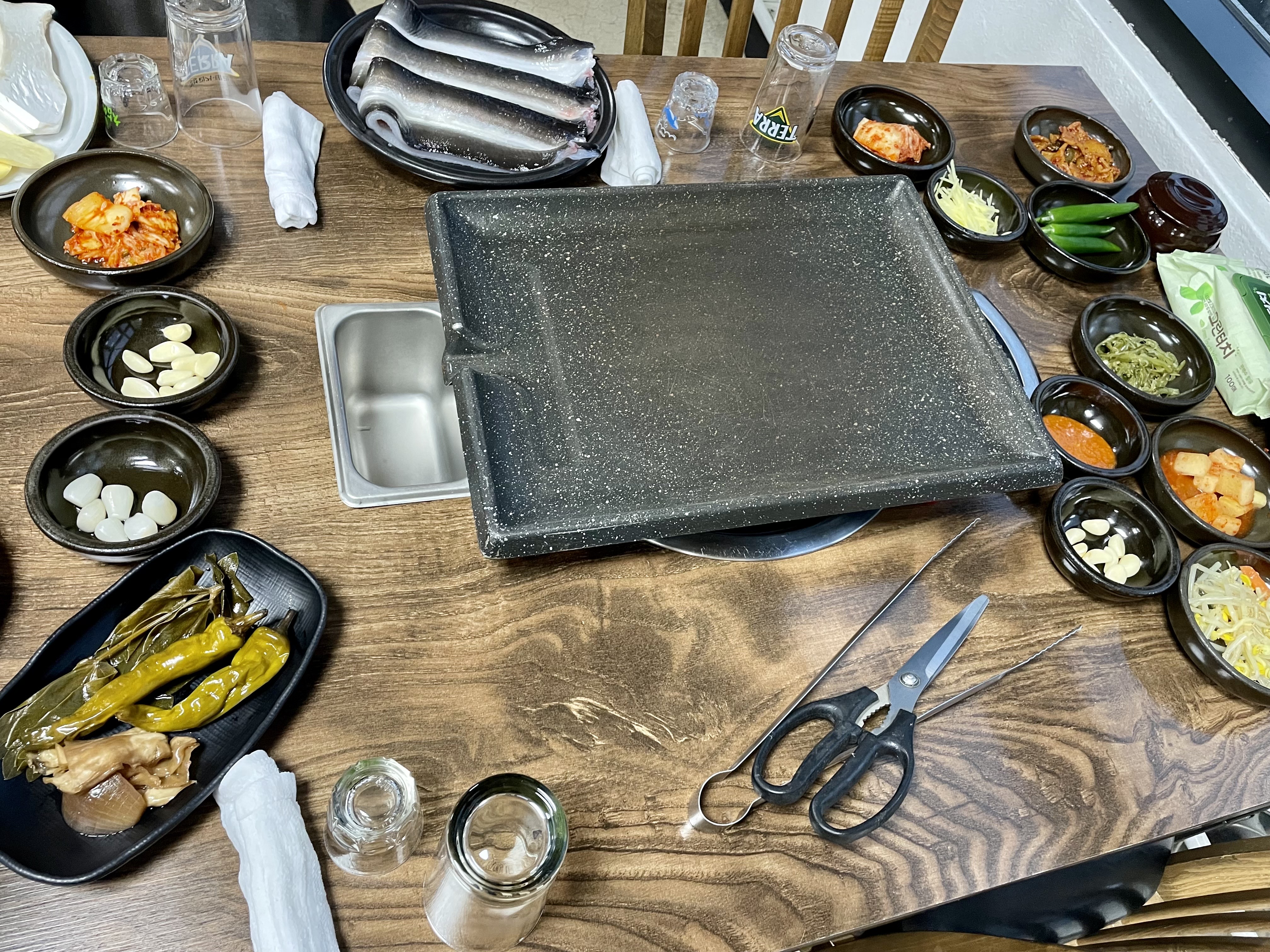 불판을 충분히 달구어