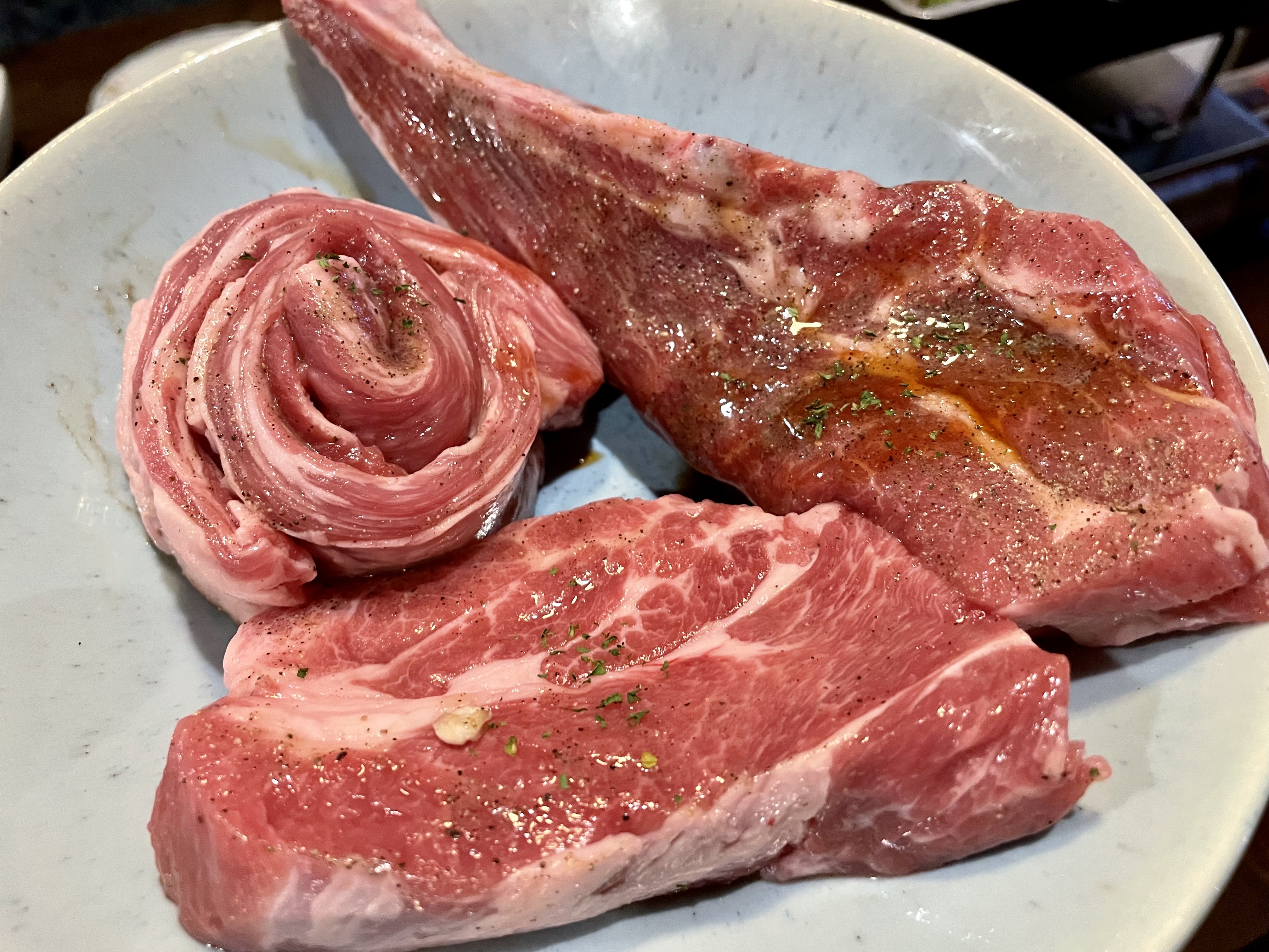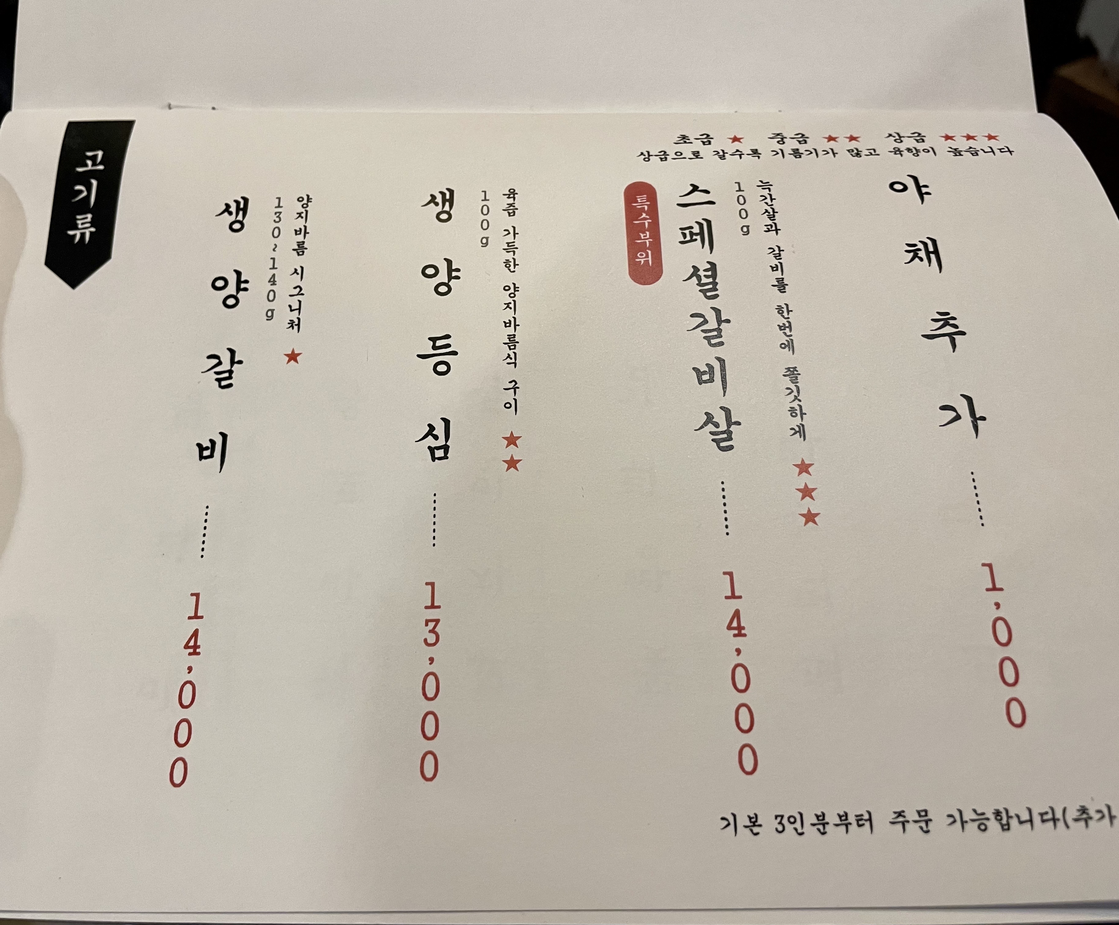 우린 양갈비 2개와 갈빗살 1개를