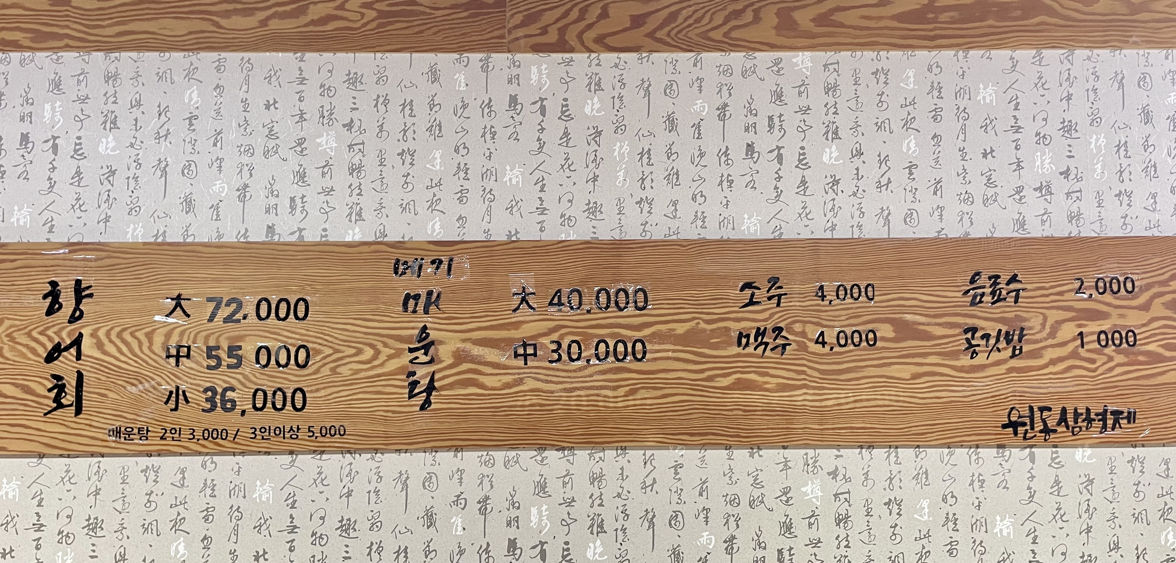 향어회 전문점 원동삼형제다.
