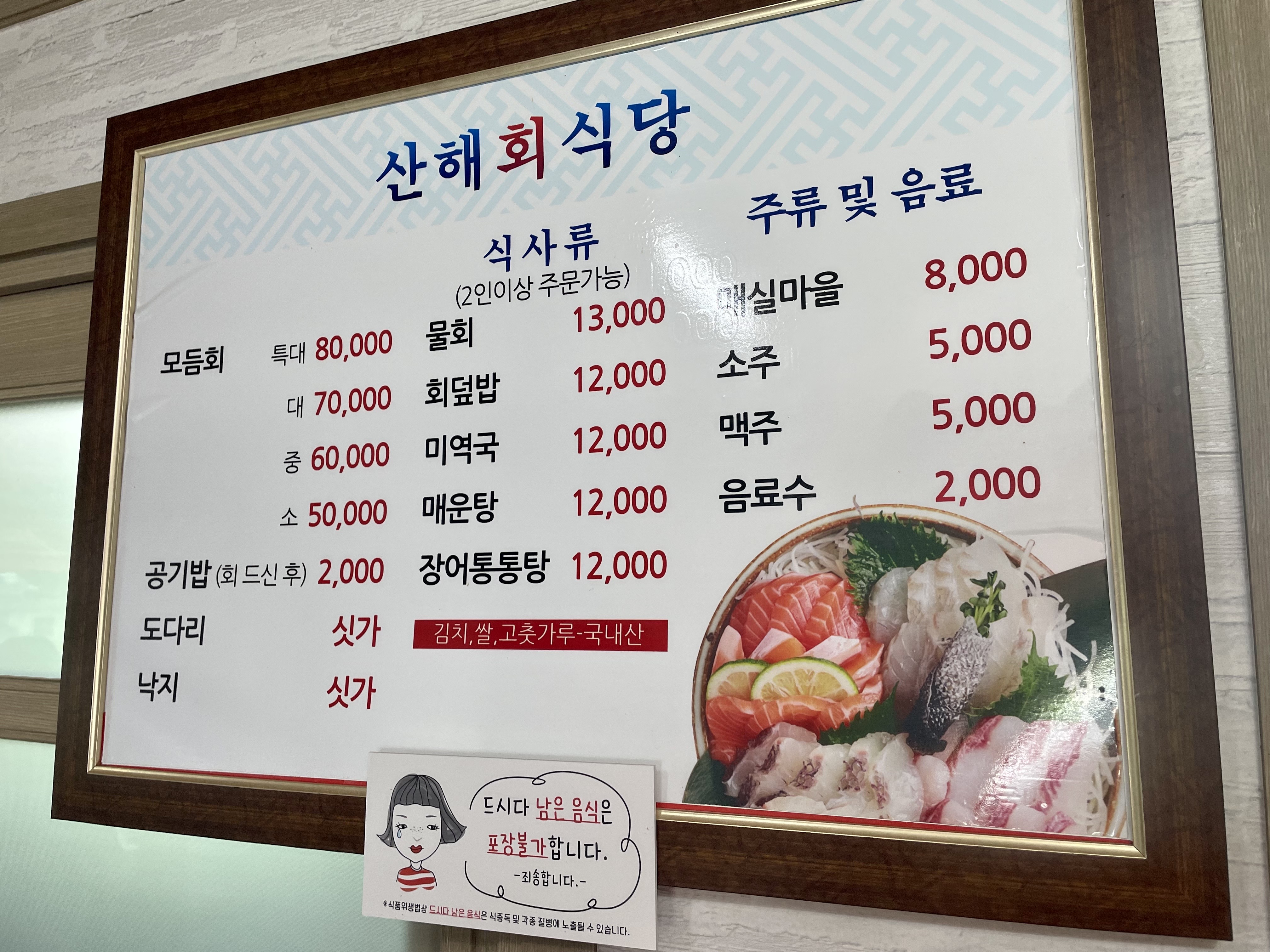 산해회식당은 전화해서 예약만 했는데