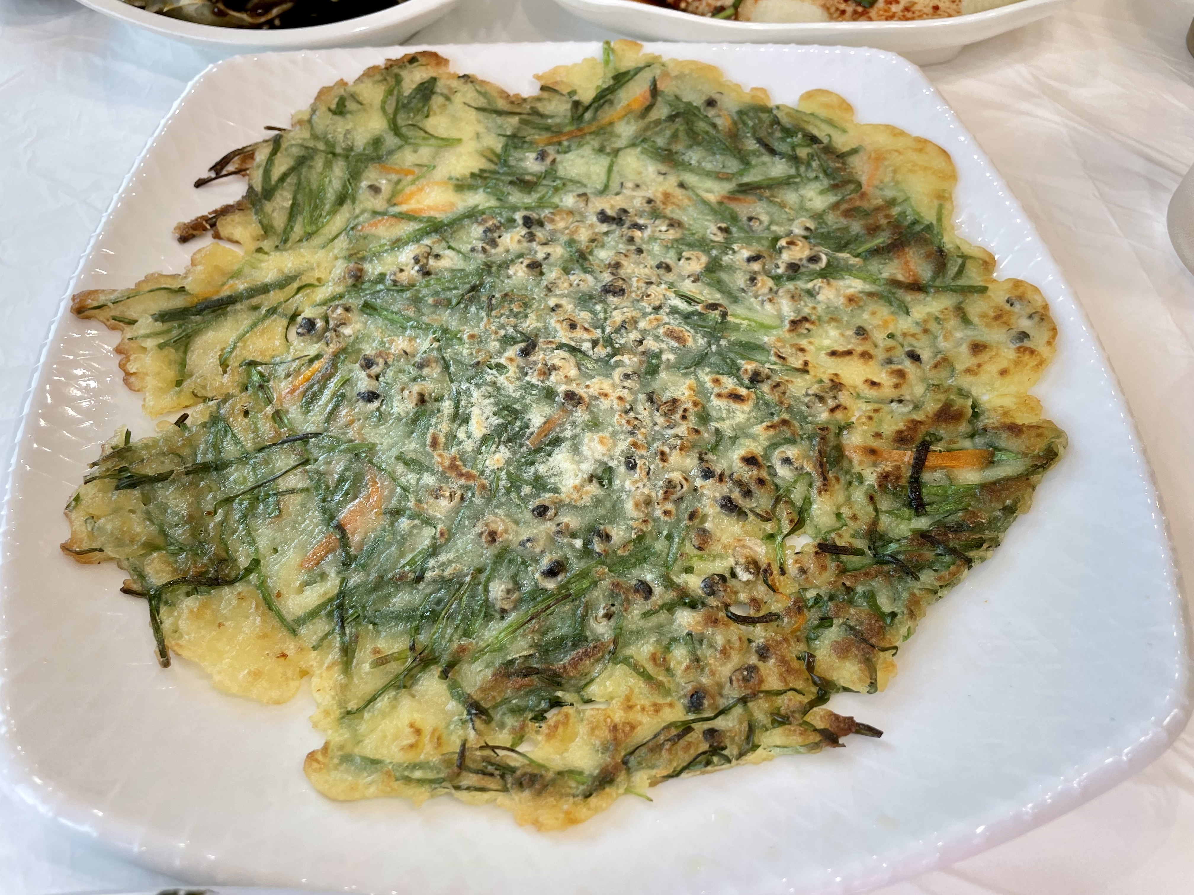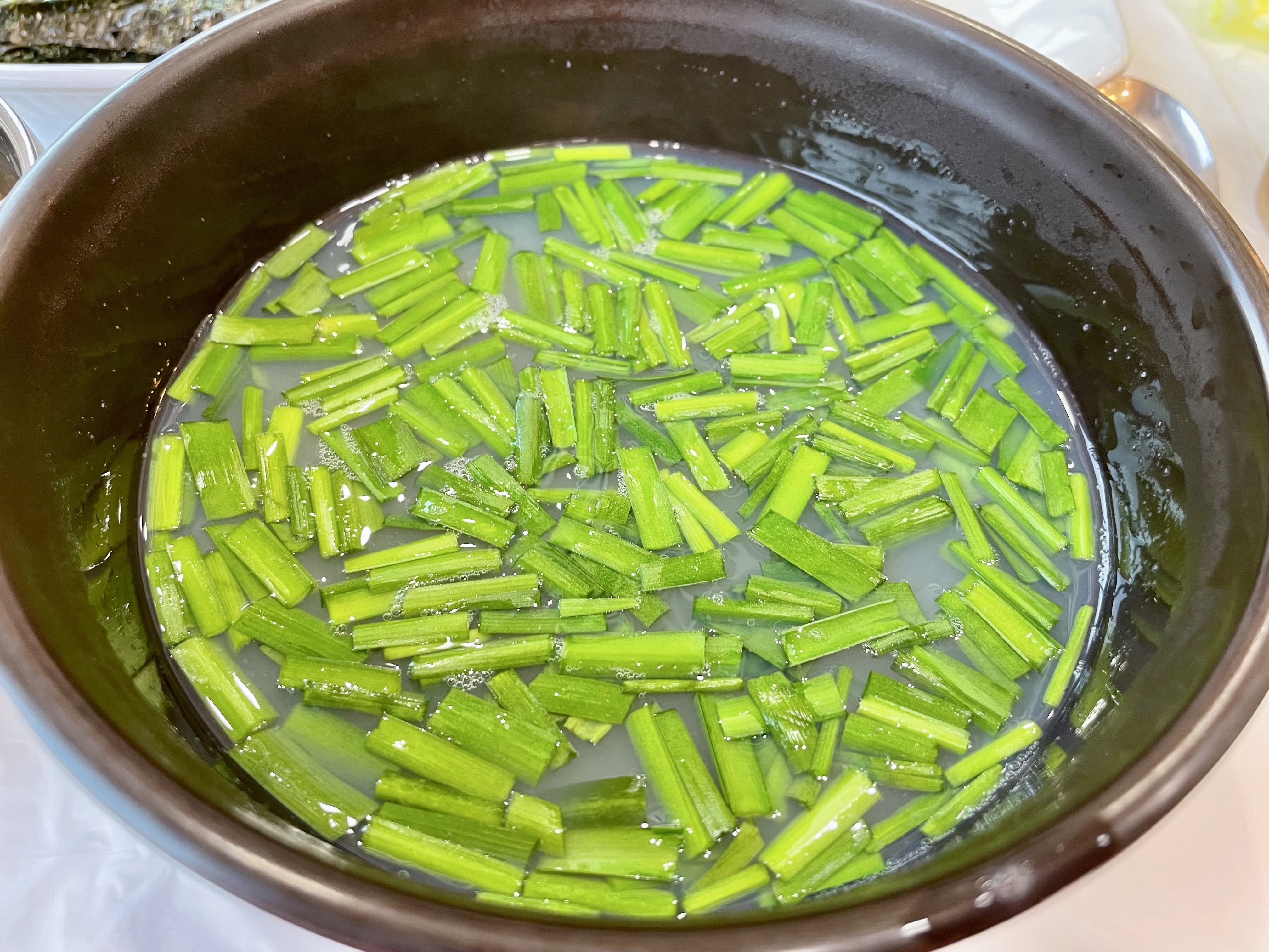 재첩 회랑 파전을 조금 넣고 먹으면
