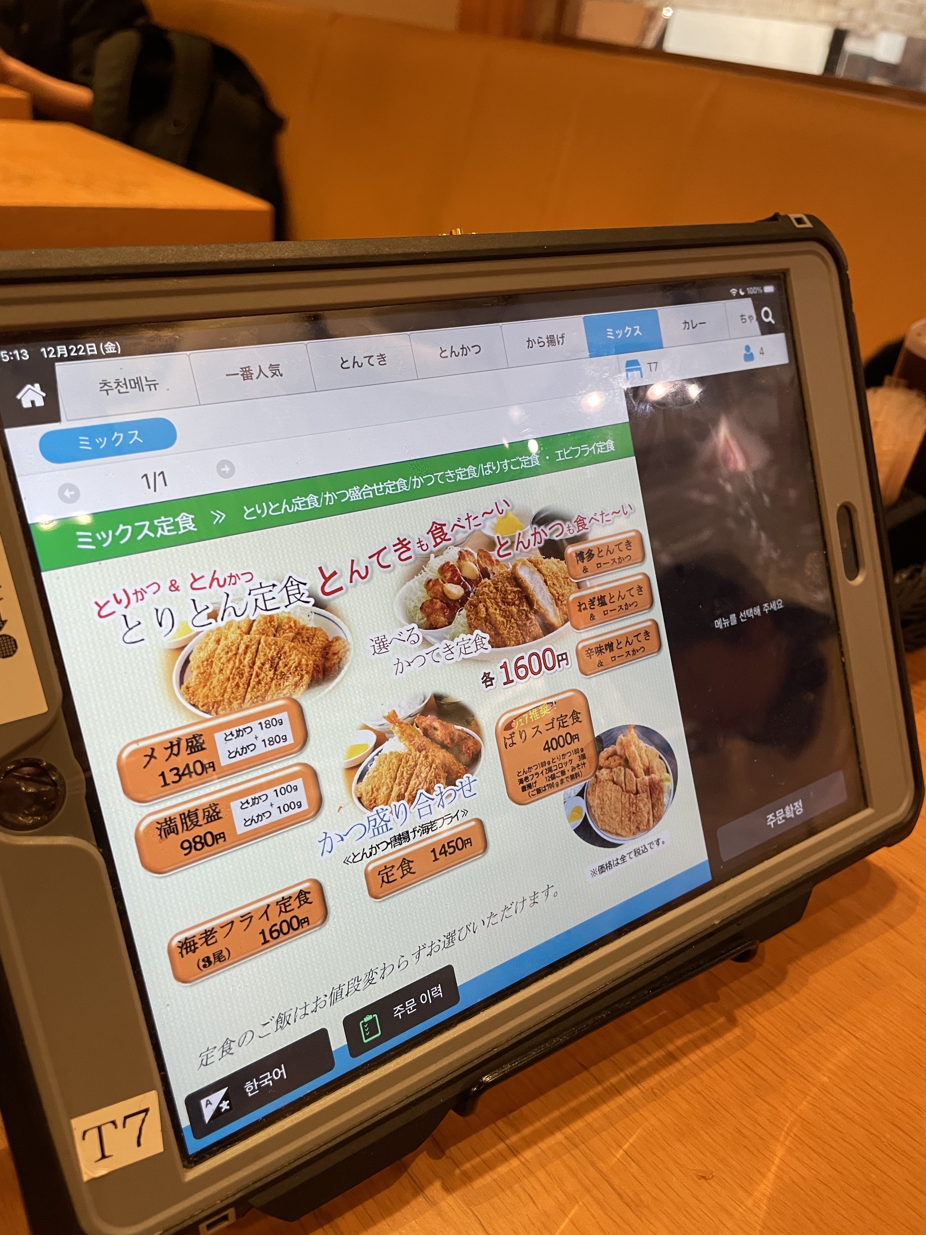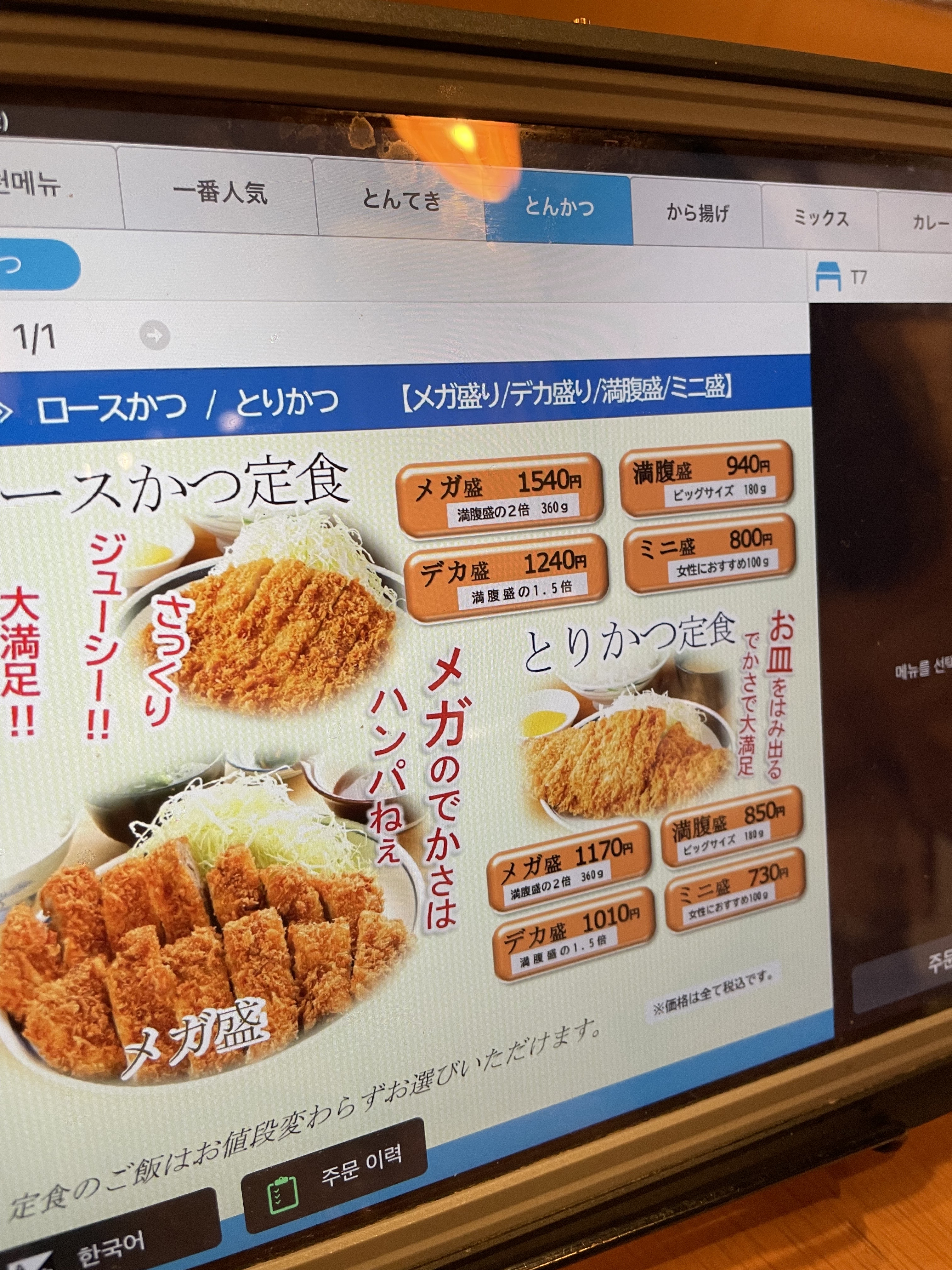 아버지는 토리카츠(치킨카츠)를 주문했다.