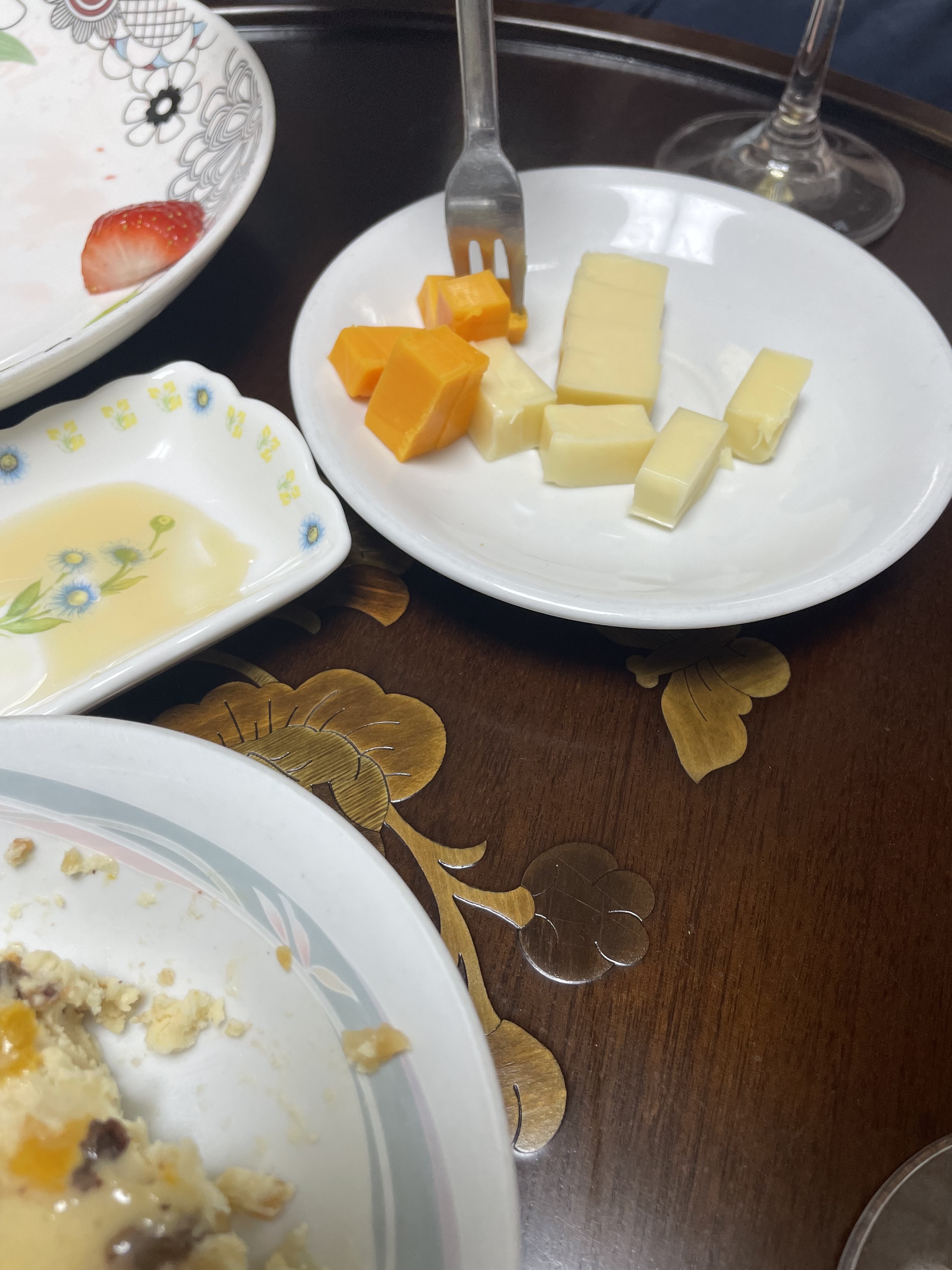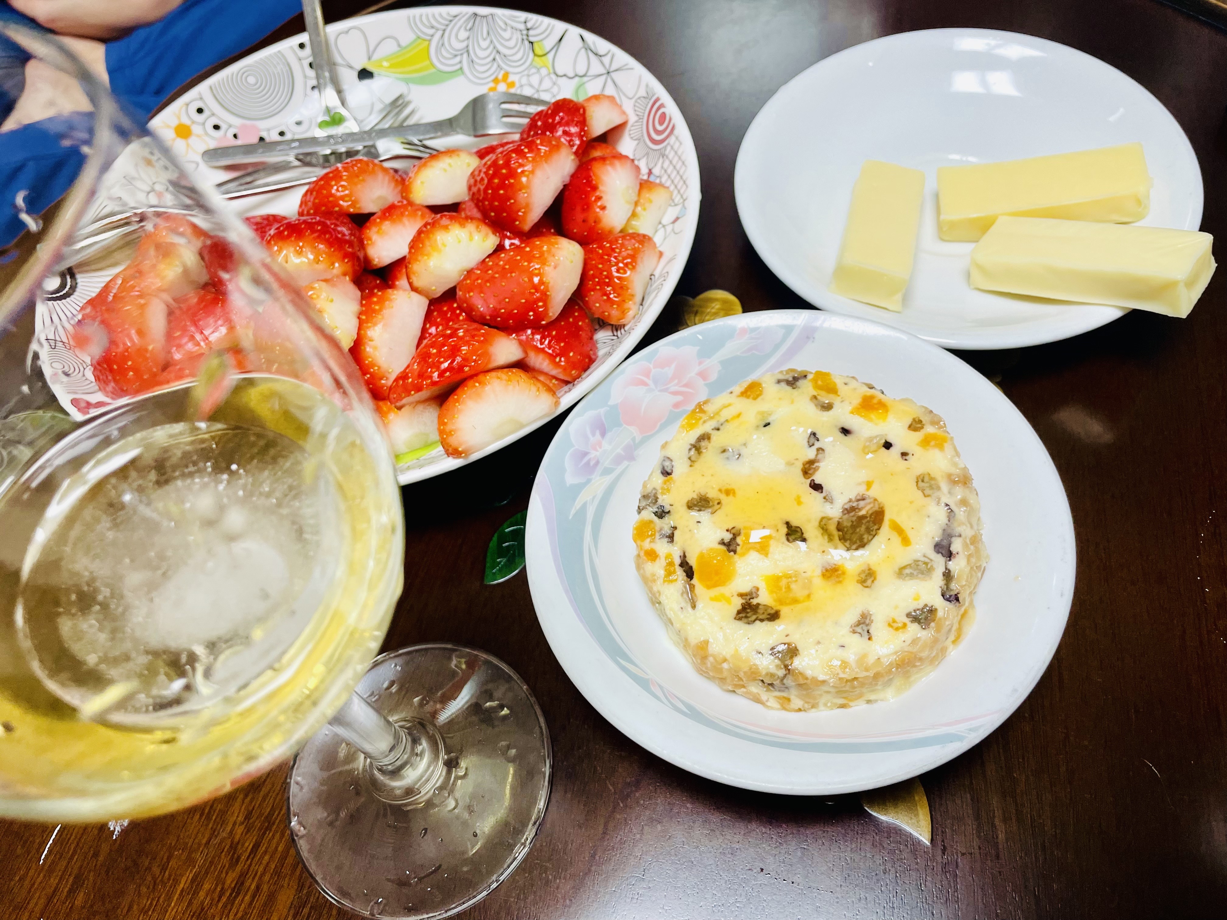 9시가 훌쩍 넘은 시간에 과일안주와 치즈를 곁들여