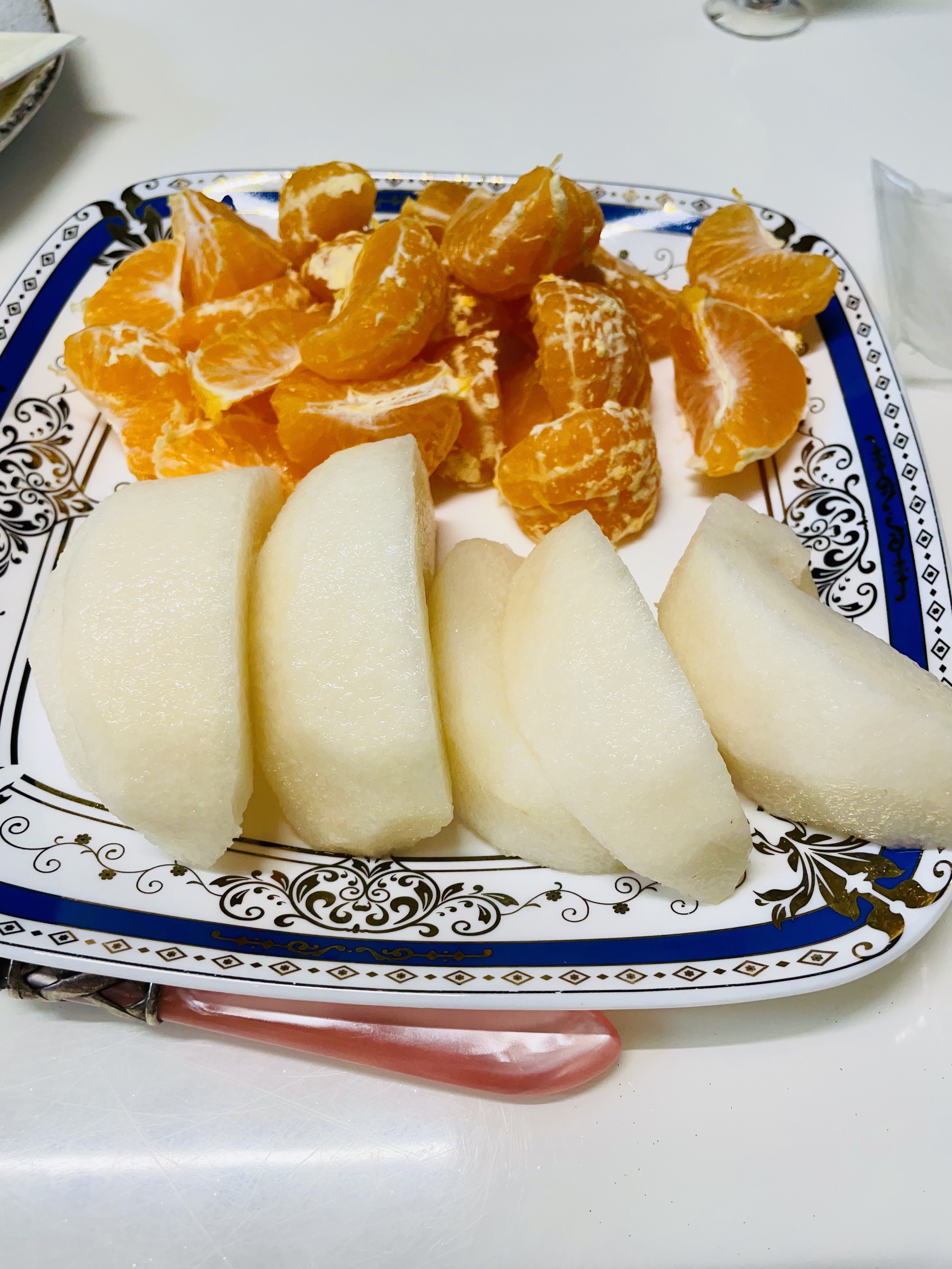 단감, 배, 귤, 치즈와 함께 음미하며 술을 먹었다.