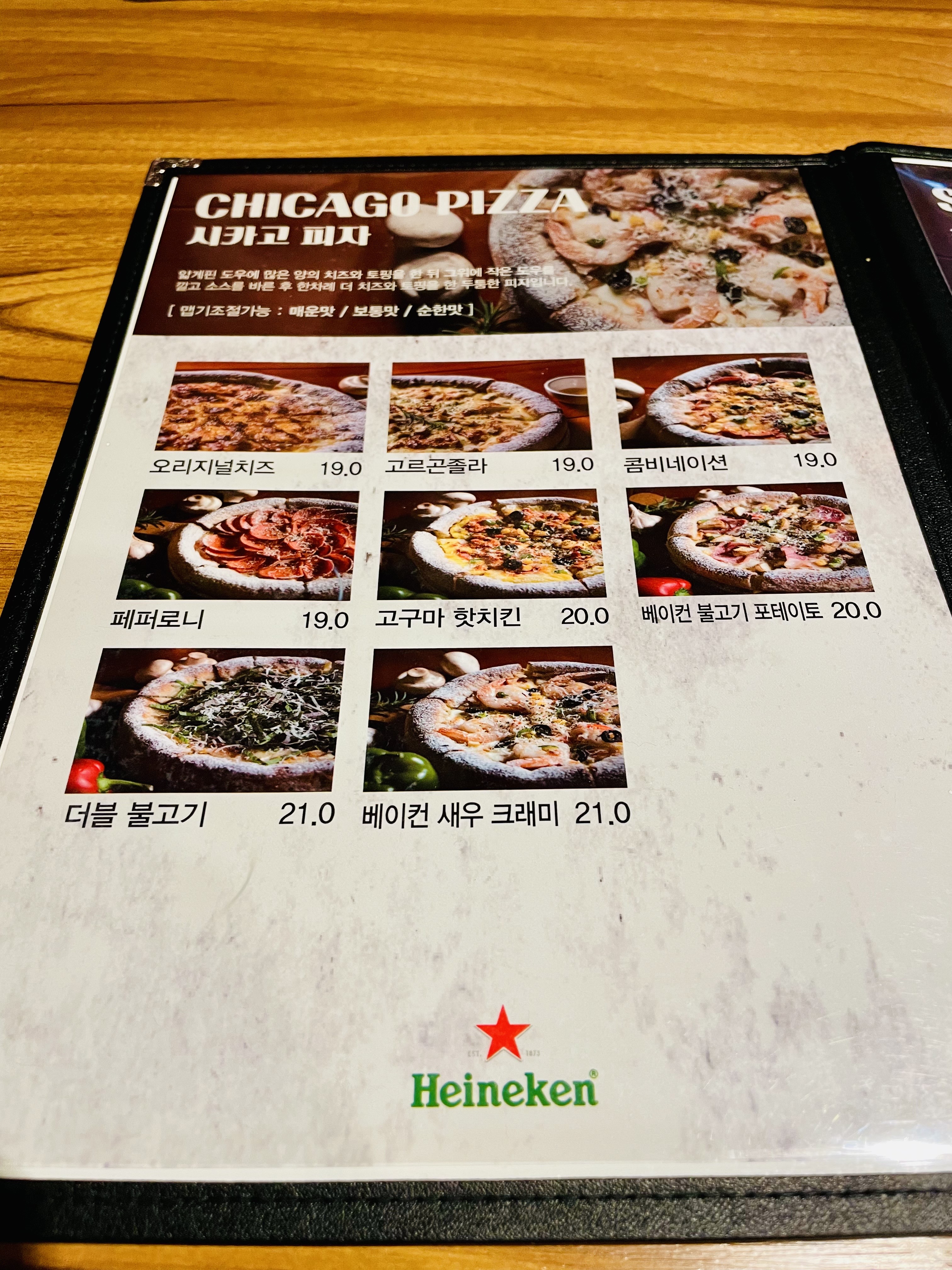 맥주를 구한 피자 모라점이다.