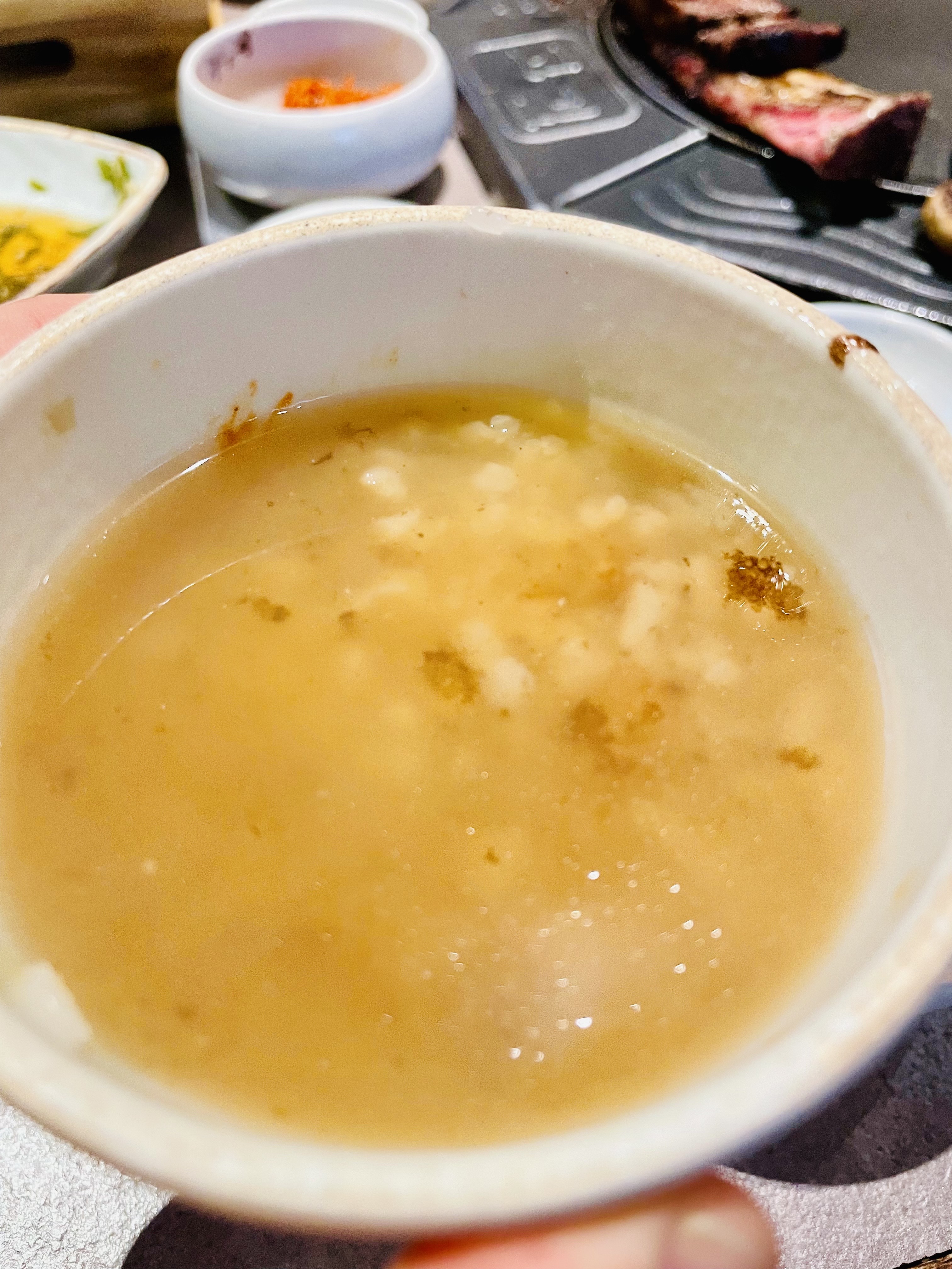 고기를 먹은 뒤 돌솥밥과