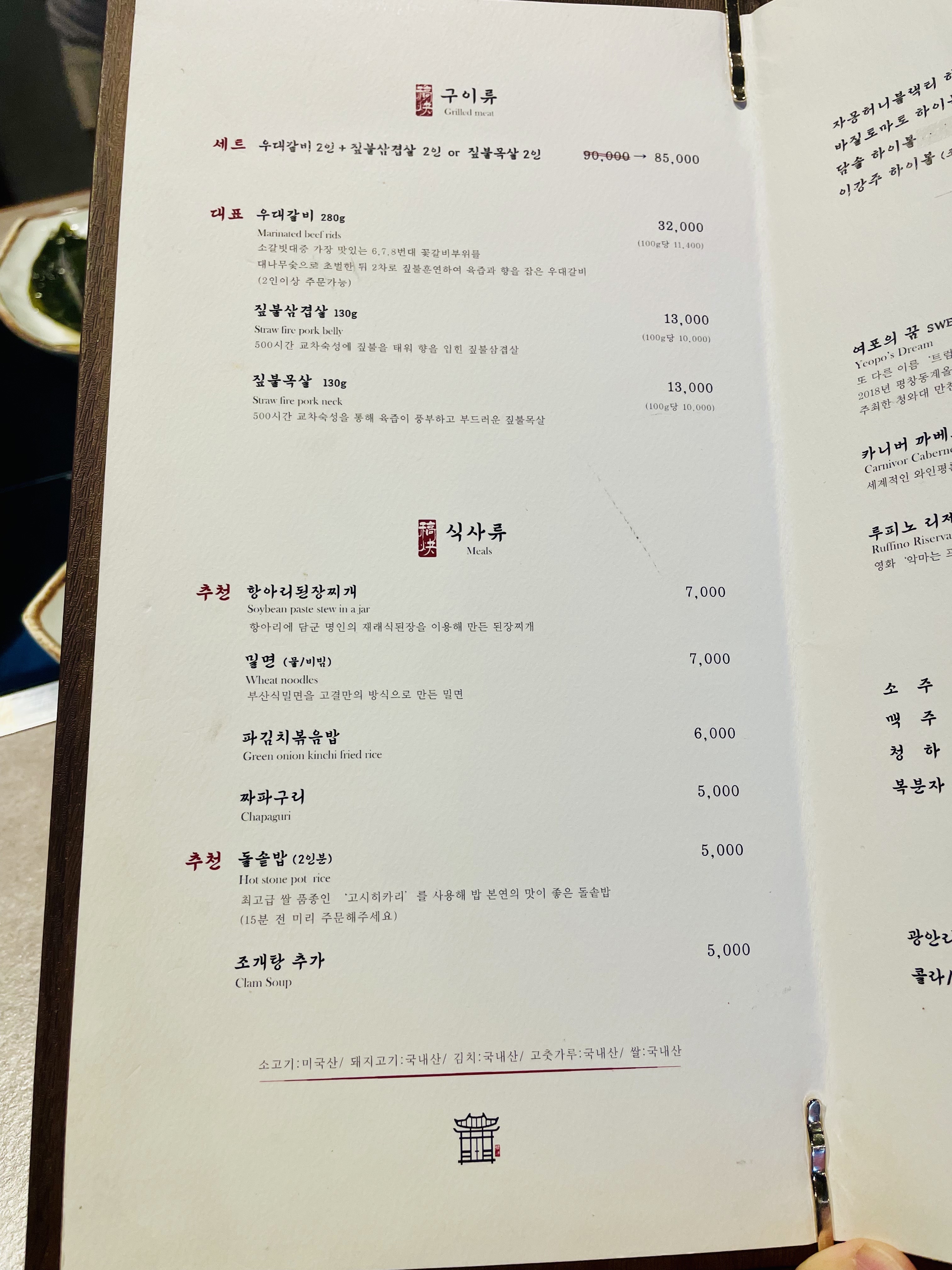 구성돼있는데 우린 짚불 삼겹살로 주문했다.
