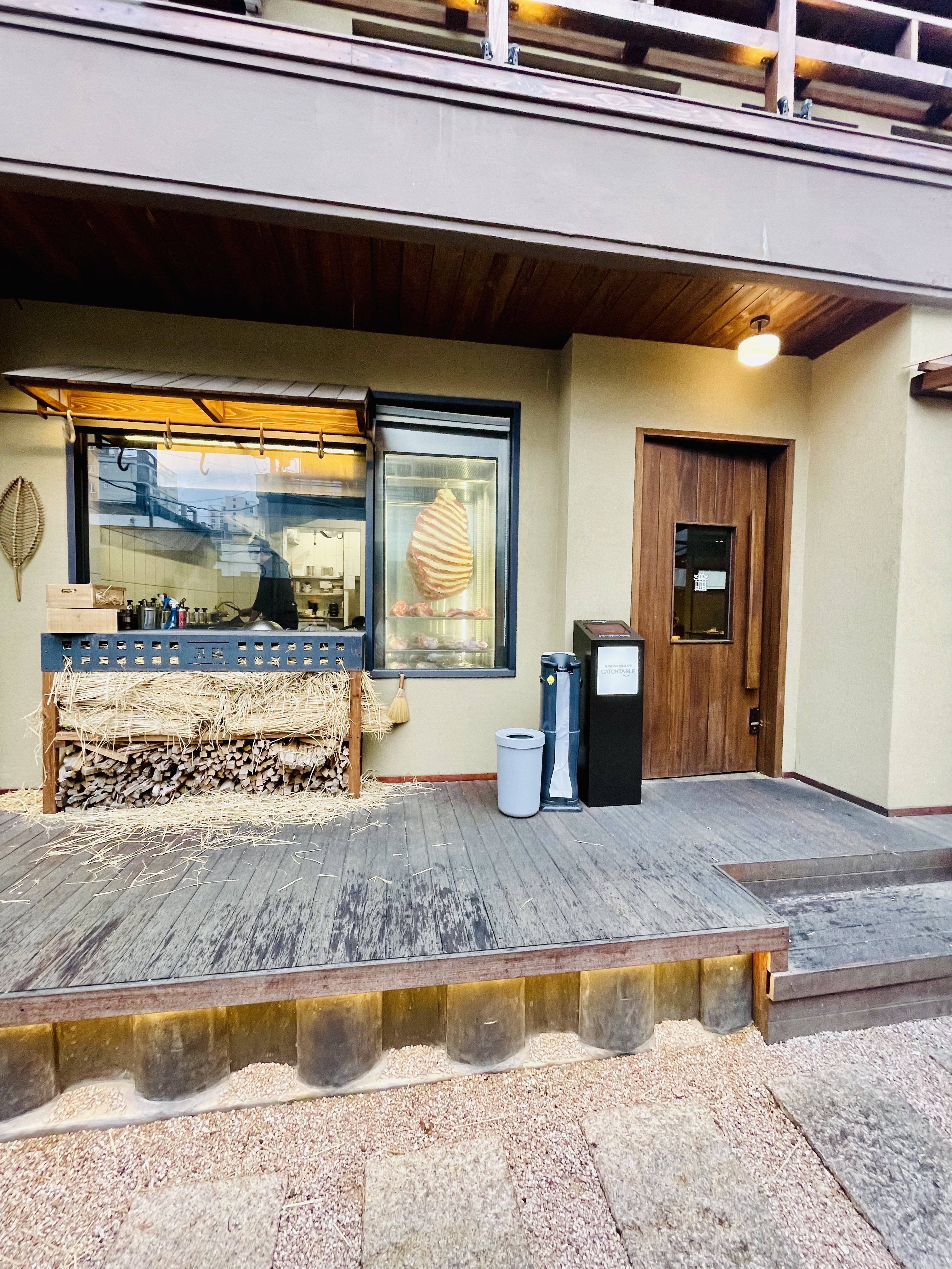 가게 앞에는 짚단이 가지런히 준비되어 있다.