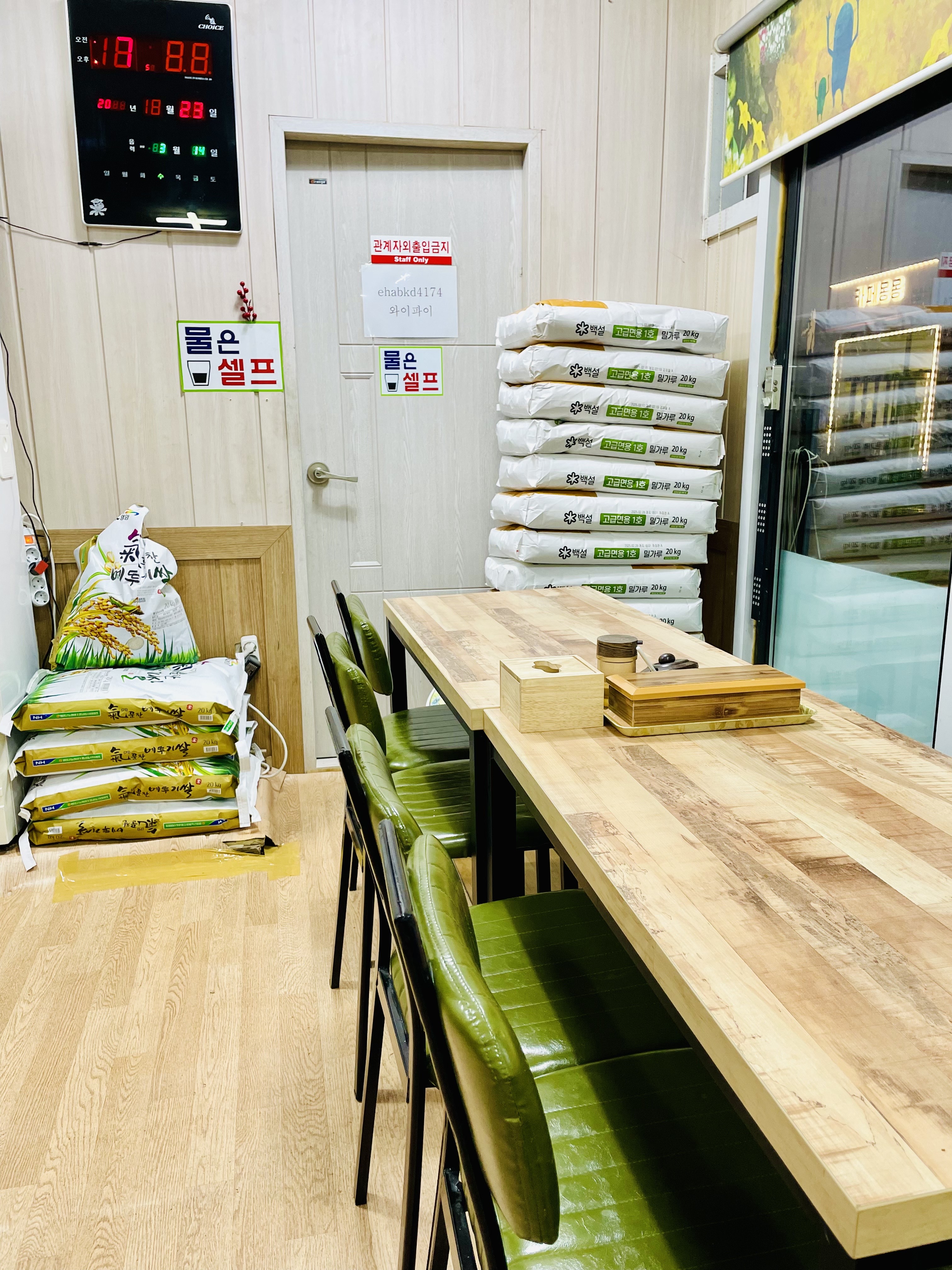 주변을 둘러보니 밀가루와 쌀이 쌓여있다.