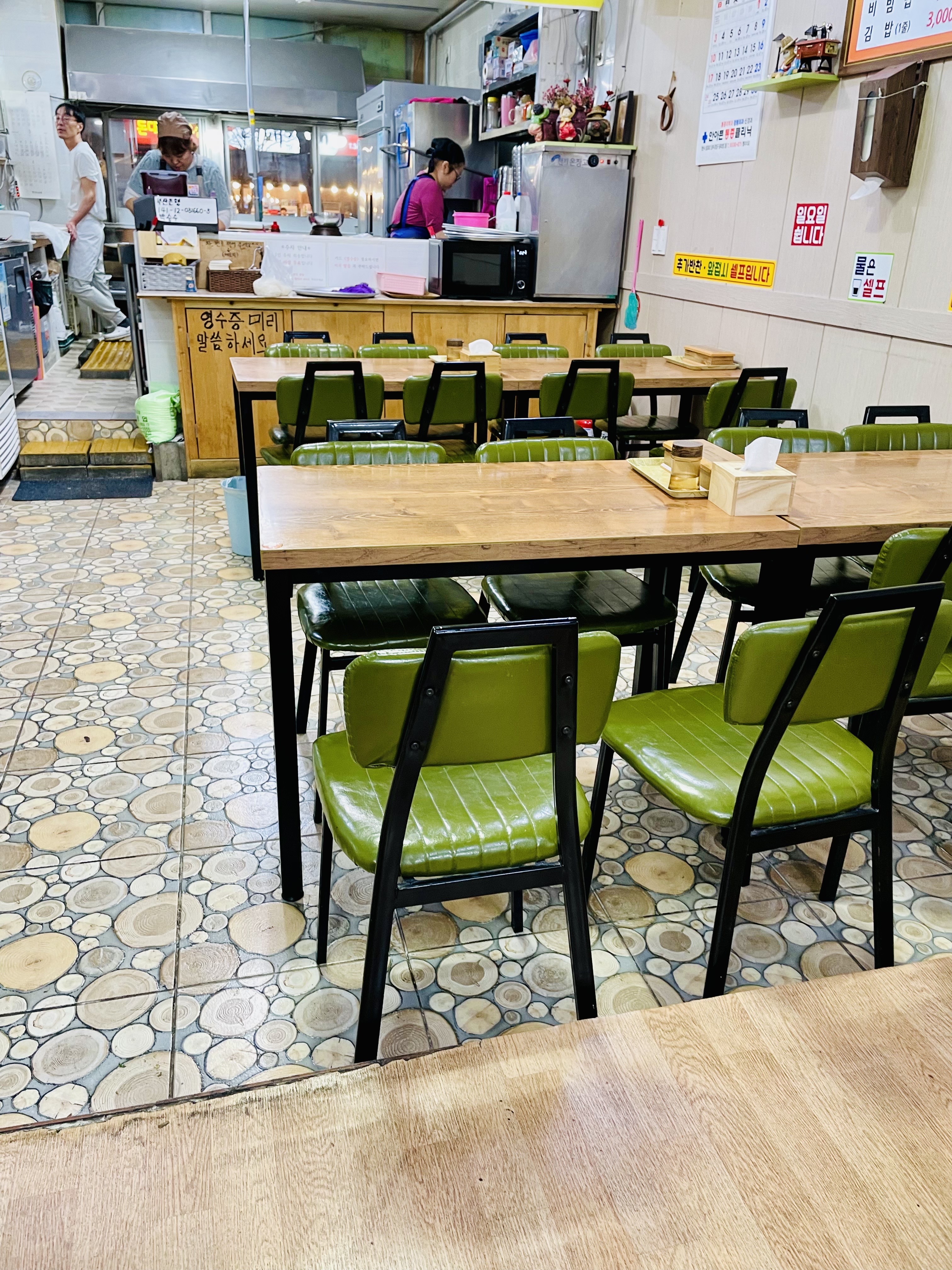 칼국수와 김밥이 나오기를 기다린다.