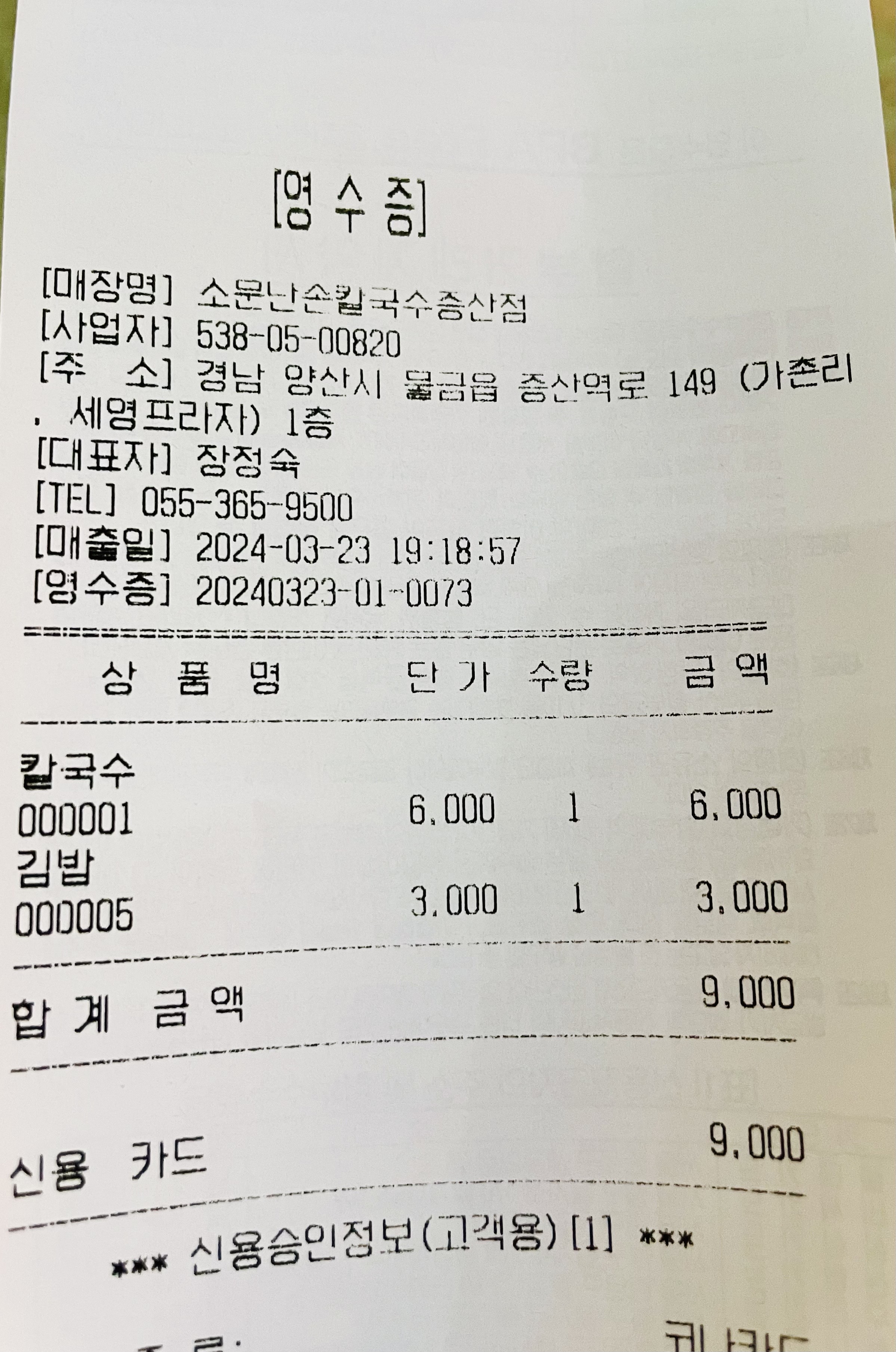 김밥까지 주문하면 9,000원이란 돈이 나온다.