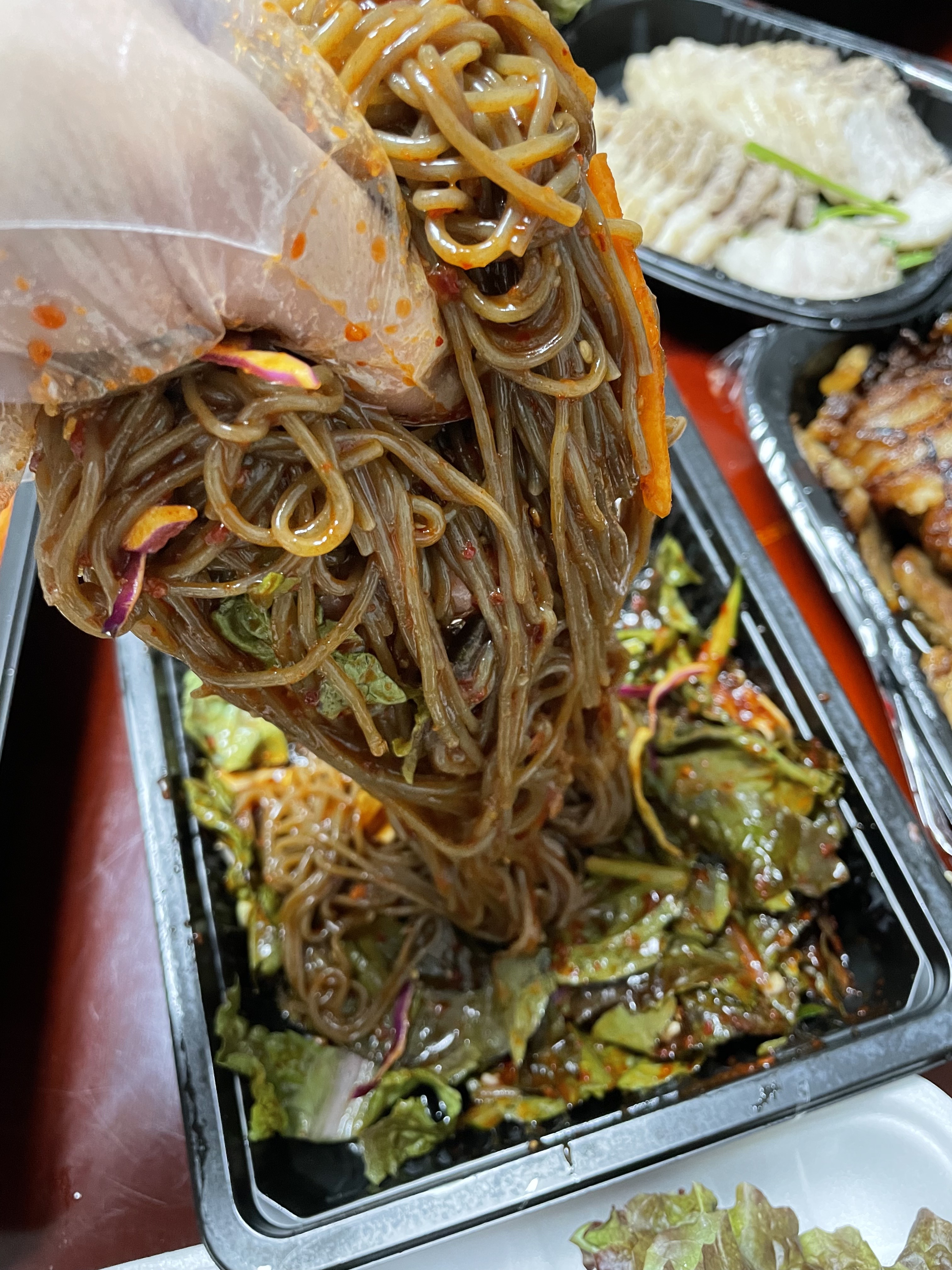 쟁반 국수가 3개나 왔다.